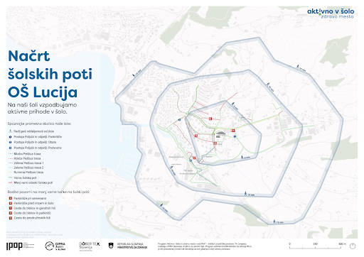V okviru procesa priprave Lokalnega načrta hodljivosti za občino Piran, smo v programu Aktivno v šolo in zdravo mesto skupaj z OŠ Lucija posodobili načrt šolskih poti, ga naredili grafično privlačnega in nanj zarisali izohrone peš oddaljenosti od šole in trase Pešbusa in postaje Poljubi in odpelji.